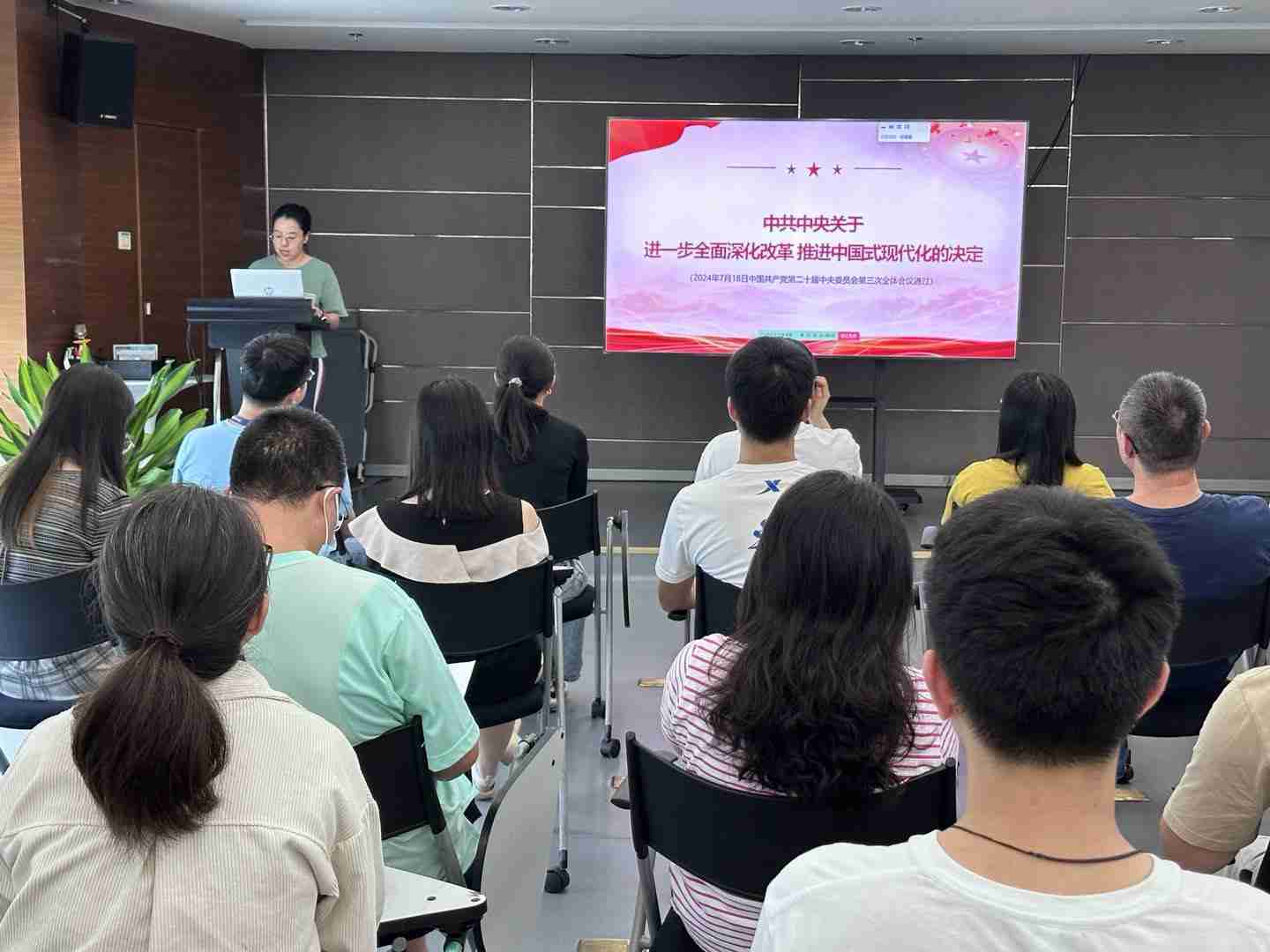 925日,,35273党总支召开会议,,,,聚焦党的二十届三中全会审议通过的《中共中央关于进一步全面深化改革 推进中国式现代化的决定》(以下简称《决定》)原文,,专题学习全会精神,,进一步提高思想认识、、、强化理论武装。。。党总支全体党员、、发展对象、、、入党积极分子参加会议。。