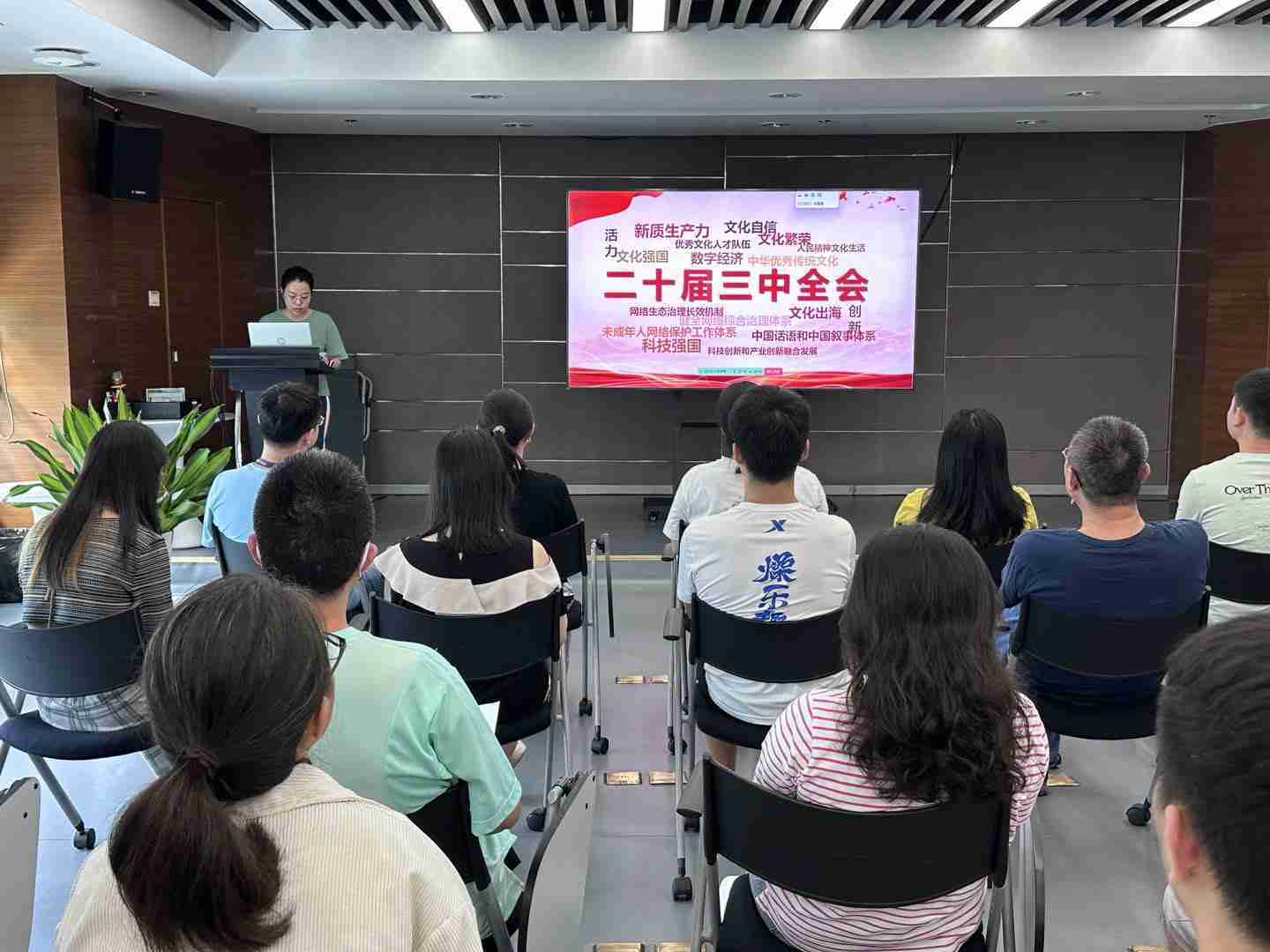 与会人员深入学习《决定》内容。。。。党的二十届三中全会提出必须增强文化自信,,,发展社会主义先进文化,,弘扬革命文化,,,传承中华优秀传统文化,,,,加快适应信息技术迅猛发展新形势,,,构建更有效力的国际传播体系,,,这为广大文化产业工作者指明了奋斗方向。。