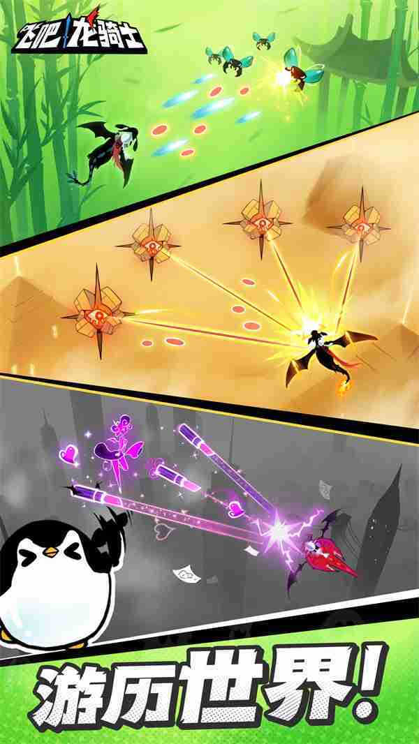 《飞吧龙骑士》是一款集合了飞行弹幕射击、、、Roguelike要素和挂机养成的休闲手游,,,极具创意的吞食子弹反击玩法,,,突破传统飞行射击的刻板限制,,,带来了独特的爽快清屏体验。。。