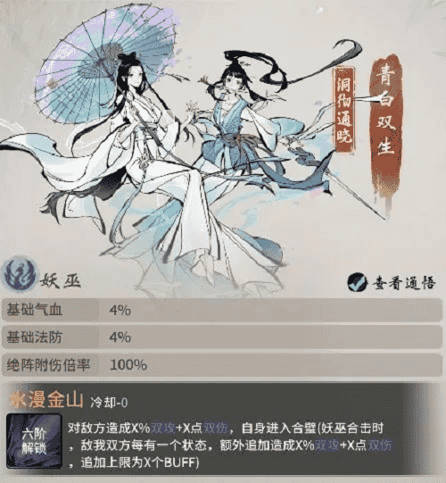 西湖踏春,,,,未曾想竟卷入到青白蛇故事中。。青蛇与白蛇本是修道有成的小妖,,,,两人在西湖边上开了间医馆,,济世救民,,不料沾惹人世因果,,遭高僧误解。。白蛇被镇压于雷峰塔下,,侥幸逃脱的青蛇则在三界奔波,,,只为早日寻得解救白蛇之法。。如今千年已过,,,,高僧云游四海,,,,雷峰塔封印松动,,,,而青蛇亦寻得强力古宝,,,意欲趁此机会解救出姐姐……若仙友有幸与青白双生结识,,即可习得其绝技·水漫金山,,,对敌方造成双攻伤害,,于修炼大有助益。。