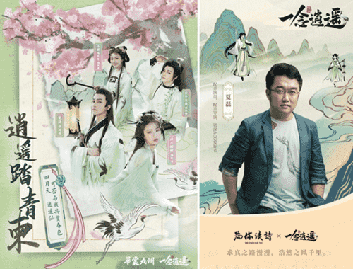 在游戏之外,,《一念逍遥》一直致力于打造国风修仙原创IP,,,,以音乐、、、、漫画,,小说等衍生内容去延展丰富游戏内容。。。。上线以来,,整整做了十首歌,,小说应该也是喜马拉雅平台今年游戏品类小说收听量Top1的作品;而在营销的内容传播上,,,《一念逍遥》也一直秉承比较国风的基调,,,传递诗词、、、文化内涵,,,,如如清明节定制汉服合作,,,,传递中国传统的清明踏青、、、清明诗会文化。。